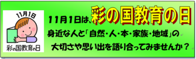 県では、教育に関する理解を深めていただくため、11月1日を「彩の国教育の日」、11月1日から7日までを「彩の国教育週間」としています。